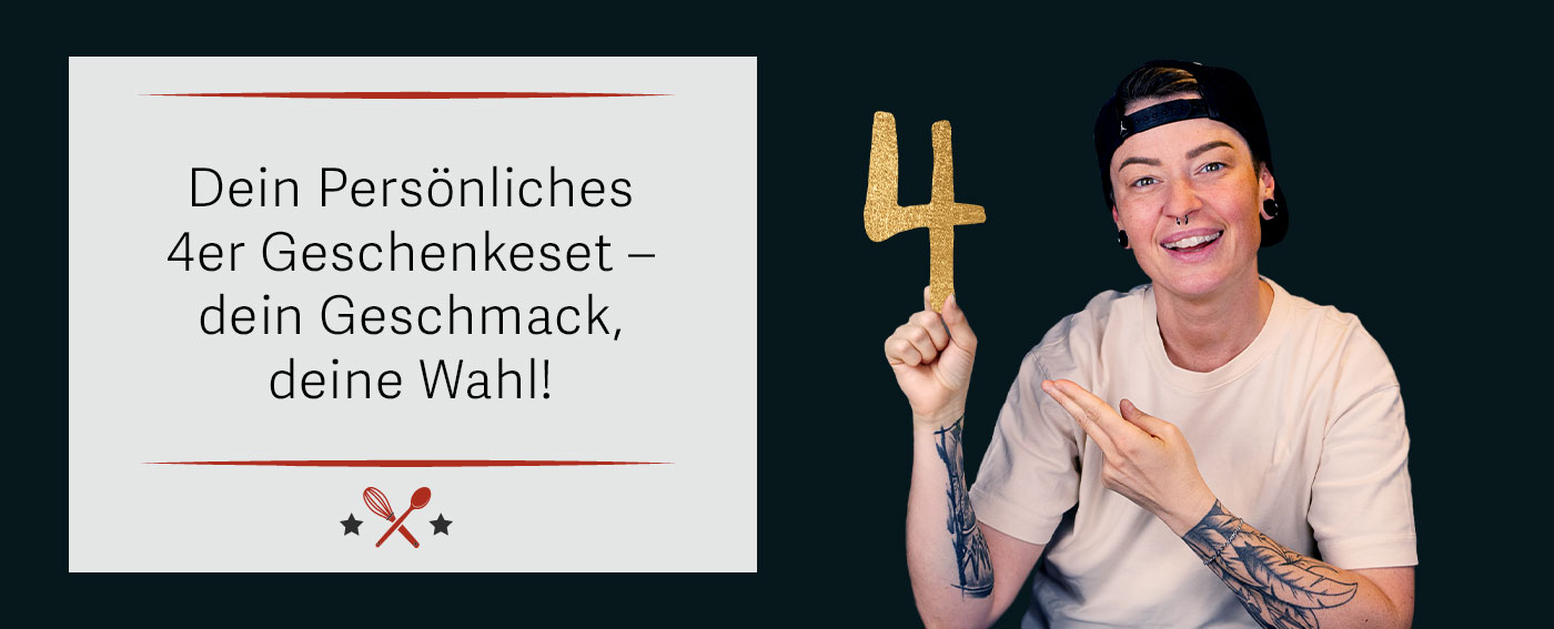- Fertig! Dein persönliches 4er Set ist jetzt im Warenkorb und kommt in einer liebevoll gestalteten Verpackung zu dir!